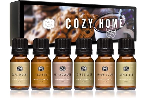 Oil Uses: Designed for but not limited to candle scents for candle making (especially works well with soy wax candle making), diffuser oil scents, freshie scents, oils for laundry, soap making supplies, slime scents, oils for skin, perfume oil, bath and body formulations, bath bombs, and many more essential DIYs.Made Easy: Amber shade bottles with easy dispensing euro dropper caps. Whether you are candle making, creating car freshies, or looking for the next summer essentials. Each fragrance oil scent is ready for any craft.Premium Grade: P&J fragrances oils are highly concentrated with a strong scent. With more than 30 years in the industry, these enhanced formulations were developed by our IFRA certified master perfumers. Our oils are safe and ideal for every home.Cruelty-Free: With over 150 different oils ranging from 10ml, 30ml, and 100ml bottles, we are proud each aroma is cruelty-free and phthalate-free. As well as sourced and manufactured in the USA. Flash Points >200Cozy Home Set Includes: This collection features 6 – 10ml premium fragrance oils delivered to you in a beautiful gift box. A meaningful gift for both men and women whether you are attending a birthday, wedding celebration, or house-warming party.