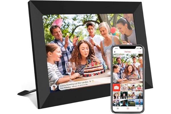 Instant Wireless Sharing: Share photos instantly from anywhere using the secure Frameo digital frame app (iOS & Android). Connect via WiFi and effortlessly send cherished family photos and videos, making it an ideal digital picture frame for anyone10.1 Inch HD Touch Screen: Experience vivid photos on a 10.1 inch digital photo frame featuring HD IPS display (1280×800). Enjoy auto-rotate, smooth slideshow features, and excellent viewing angles, perfect for showcasing treasured family memoriesLarge Storage & Easy Management: Store over 50,000 pictures with 16GB internal memory, expandable to 32GB via Micro SD card. Organize your memories easily with intuitive touch screen controls on this smart digital picture frameSimple Setup & Versatile Placement: Quick setup with user-friendly app controls suitable even for non-tech users. This digital frame includes an adjustable stand and wall-mount option, ideal for versatile placement at home or officeThoughtful Gift for All Occasions: Packed in an elegant gift box, this WiFi digital photo frame makes an ideal gift for Christmas, graduation, birthdays, Valentine’s Day, and Mother’s Day, perfect for mom, grandparents, wife, daughter, sister, or friends