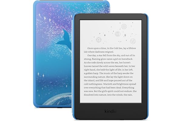 Pages that pop – Now with enhanced display features and faster page turns. Includes a cover, a 6-month Amazon Kids+ subscription, and a 2-year warranty—up to a $187 value.Amazon Kids+ is a subscription designed for kids aged 3-12, providing unlimited access to thousands of age-appropriate books, including classic chapter books and graphic novel favorites. Included content is curated by age range, so it safely evolves with a child’s interests and maturity. After 6 months, your subscription will automatically renew every month starting at just $5.99/month plus applicable tax. You may cancel at any time by visiting the Amazon Parent Dashboard or contacting Customer Service.Build healthy reading habits – Kids read, on average, more than an hour a day when they sit down with their Kindle. Kindle Kids is purpose-built for reading (not a toy)—no apps, videos, or games.Effortless reading in any light – With a 25% brighter front light at max setting—as bright as Kindle Paperwhite—light and dark mode, and 6″ glare-free display.Easy to use – The compact, lightweight design allows for one-handed reading. With 16 GB of storage, holds thousands of books. A single charge via USB-C lasts up to 6 weeks.Includes a 2-year worry-free guarantee. If it breaks, return it and we’ll replace it for free.The Parent Dashboard allows you to add books from your account to your kid’s library, view reading progress, adjust age filters, set a device bedtime, and more.
