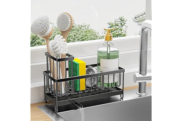 The Cisily Black Sponge Holder for Kitchen Sink is an absolute game-changer for kitchen organization. If you’re tired of dealing with a messy, cluttered sink area, this is the perfect solution.Design and AestheticsFirst off, the sleek black design adds a modern touch to my kitchen. It’s minimalistic and stylish, blending perfectly with my sink area without being too bulky. The matte finish gives it a high-end feel, and it doesn’t stain or show water spots easily—always a bonus in the kitchen.FunctionalityWhat I really love about this sink caddy is its thoughtful design. It has a high brush holder that allows you to store your dish brushes, which is fantastic for keeping them upright and dry. This small feature has really made a difference in preventing soggy, bacteria-prone brushes that are always laying around.The sponge holder is spacious enough to fit my large sponge, and there’s even a small compartment for things like a small scrub brush or even dish soap. No more juggling multiple items or wondering where I left that pesky scrubber. Everything has its place!Durability and MaterialThe holder is made from high-quality, rust-resistant material, which is a big deal when it comes to kitchen accessories that are exposed to water constantly. After a few weeks of use, it still looks as good as new, with no signs of corrosion or wear. It’s also very sturdy and doesn’t feel flimsy at all.Ease of Use and CleaningThe best part? It’s incredibly easy to clean. The open design ensures that water drains away quickly, keeping things dry and hygienic. There’s no stagnant water collecting underneath, which was always an issue with my old sponge holders. I just give it a quick rinse once a week, and it’s good to go.ProsOrganized and tidy: Keeps my sink area neat, with dedicated space for sponges, brushes, and other items.Stylish: The sleek black design looks great in any kitchen.Rust-resistant and durable: Made from high-quality materials that will last for years.Easy to clean: Open design makes it low-maintenance.Compact: Doesn’t take up too much space but provides ample storage.ConsSize limitations: While it fits most common items, if you have extra-large sponges or brushes, they might not fit as easily. However, this wasn’t a problem for me with typical kitchen tools.Final VerdictThe Cisily Black Sponge Holder is a small but effective upgrade for any kitchen. It’s simple yet functional, and the thoughtful design really helps keep my sink area organized. The high brush holder and drainage features make it super practical, and the rust-resistant material means it’ll stay in great condition for years. If you’re looking to tidy up your sink space without compromising on style or durability, this sink caddy organizer is definitely worth it! Highly recommended!