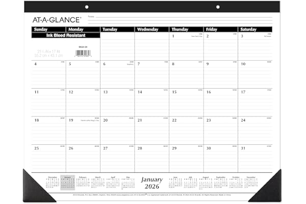 AT-A-GLANCE 2026 Desk Calendar, Monthly, Desk Pad, 21-3/4″ x 17″, Large, Ruled Blocks (SK240026) is one of the best-selling products with 3017 reviews and a 4.7/5 star rating on Amazon.