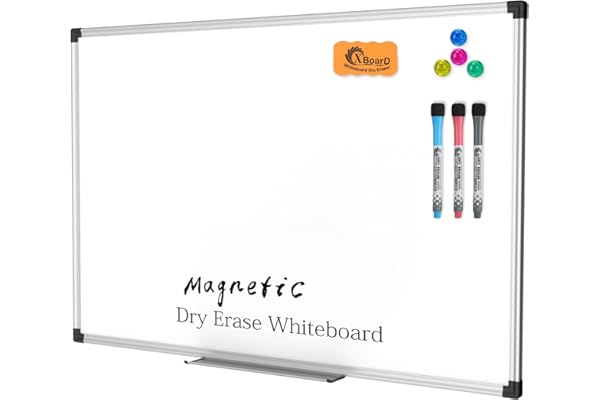 【Double-sided Whiteboard】- WALGLASS Whiteboard made of smooth and scratch-resistant surface, easy to write on and dry erase without stain. Double sides magnetic whiteboard design can meet all your needs to post messages and pictures on the white board with magnets.【Durable & Lightweight】: WALGLASS Magnetic white board with aluminum frame is solidly builted, portable white board is lightweight enough to be held by tacks, which can be easily hanged on the wall horizontally and vertically as you like with 4 movable hanging hooks.【Smooth Writing & Easy to Clean】: You’ll love how easy it is to write on our smooth and durable writing surface, which is also easy to wipe clean with the included magnetic eraser. From making to do lists to brain storming with co-workers.it offers exceptional versatility and can be used again and again.【Multiple Uses】: Package include 4 magnetic dry erase markers (include 4 color), 6 magnets, 1 movable tray, 1 dry eraser. WALGLASS Magnetic dry erase board is a good choice for home, school, office, small group instruction, kitchen, stores, dormitory and classroom etc. Perfect for using magnets to pin notes, messages, pictures, memos, calendars and more, without paper wasting.【High Quality Assurance】: WALGLASS aims to create an emotional connection with our customers. Our after-sales team will reply to any questions about products, orders, and upgraded ideas within 24 hours. We are confident of our whiteboard and glad to talk and build a connection with our lovely customer.