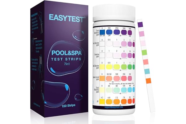 EASYTEST 7-Way Pool Test Strips, 150 Strips Water Chemical Testing for Hot tub and Spa, Accurate Test Bromine, Total Alkalini