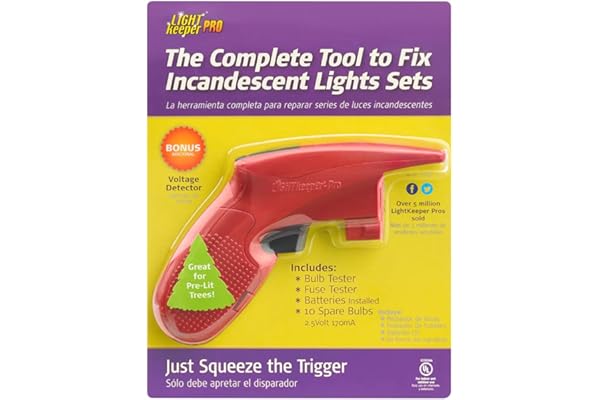 LightKeeper Pro fixes most incandescent light sets in seconds with the squeeze of the trigger. LightKeeper Pro’s Quick Fix Method repairs the #1 cause of light set failure known as a Shunt Issue (internal bulb failure).Great for Pre-Lit Trees, icicle light sets, net lights, wreaths, garland, and other pre-lit décor. Over 6 million LightKeeper Pro’s sold!Includes Bulb Tester, Fuse Tester, Bulb Puller, Storage Compartment for spare bulbs & fuses, 10 clear replacement bulbs (2.5V, 170mA). Even includes Batteries (1.5 Volt Alkaline).Audible Voltage Detector assists in finding interuptions in the circuit such as loose bulbs, connection issues within the socket, etc. This feature does not work on a lit light set that has no issues. Check out our instructional videos to learn why.Ulta-Lit Tree Company (the manufacturer) offers a Lifetime Warranty (excluding batteries & bulbs) on this item, testing to the highest standards to ensure that quality items arrive at your door. For more information, visit UltaLit.com.