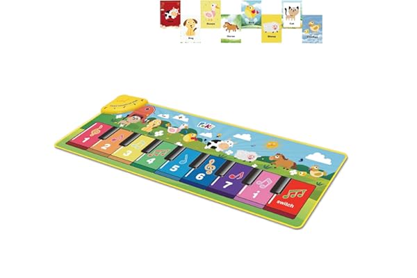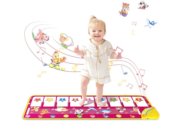 MULTIFUNCTIONAL BABY TOYS: 2 in 1 Baby Music Playing Mat for 1 year old girl and boy help baby learn to play many different styles of music. The piano side has the sounds of 6 instruments (piano, violin, vibraphone, trumpet, accordion, guitar) and 13 piano keys. The drum side come with 2 drumsticks for fun drumming for 1 2 3 year old boys and girls enjoy playing the drum set. Wonderful piano play mat for baby, piano keyboard baby gifts, toddler valentines gifts, toddler easter gift idea.EDUCATIONAL MUSICAL TOYS: This toddler musical mat size: 31.5*19.6in, it can develop baby’s musical interest, improve hand and feet coordination skills, fostering creativity, and promoting exercise at an early age. The music play mat supports toddler jumps, walks and play the piano keys with their hands, which is very beneficial to improve hand and foot coordination skills. Perfect 1 2 year old girl boy gifts, 1 year old girl boy birthday valentines gifts to enlight baby’s music talent and develop basic musical skills. Perfect easter toys 12-18 12-24 months.SAFETY & PORTABLE: Our Toddler musical learning toys, strictly selected eco-friendly material, safe and odorless. This 1st birthday girl gifts is easy to fold and easy to store when not in use. High-quality fabric will not hurt babies’ delicate skin. Batteries are in a compartment with a screw closing to keep out of reach. Infant will enjoy the play time with baby musical mat toys, you have no safety concerns with the baby toys 12-18 months.TOUCH SENSITIVE & INTERACTIVE: Our baby play mat touch inspired, unlike ordinary physical buttons, can be touched by hand and stepped on by foot, interactive, just touch and click on the musical instrument icon to select the instrument you want to play. In addition, the toddler toys age 1-2 is designed for for baby, it is a good way to enhance interaction between parent and child., and is a great early learning toy. 1 year old boy girl birthday easter gifts.IDEAL BABY BOYS & GIRLS GIFT: Our Musical mat is designed for toddler 1 2 3 year old, with clear music sounds and adjustable volumes to attract toddlers’ attention and enjoy for hours. It is an ideal Christmas, Thanksgiving and Birthday gift for baby infant 1 2 year old girls and boys. Valentines gifts for one two year old girl and boy, birthday present for 1+ year old girl, valentines day toddler, easter toy gift for toddler.