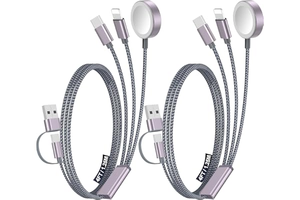 I bought this 2-pack before a family trip, and I honestly wish I had found it sooner. Between iPhones, Apple Watches, AirPods, and a gaming controller, our charging situation used to be a tangled mess. This cable completely solved that.Each cord has a USB-A and USB-C input plus Lightning and Apple Watch connectors, so no matter what device I need to charge, I’m covered. It’s compact, durable, and eliminates the need to pack multiple cables — a huge win for travel or keeping things simple around the house or office.The Apple Watch charger works perfectly and snaps in magnetically just like the original. It even handles fast charging for my iPhone 15 without any hiccups. The braided cable feels high quality and hasn’t frayed or kinked, even after being stuffed into a backpack and carry-on.Highly recommend this if you travel often or just want to declutter your charging setup. It’s a small purchase that makes a big difference in convenience and peace of mind.
